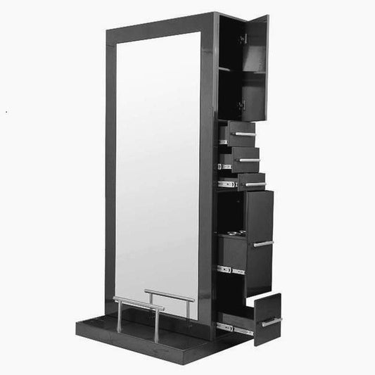 1852 Single Sided Salon Styling Station, Sleek Black Styling Station with Mirror