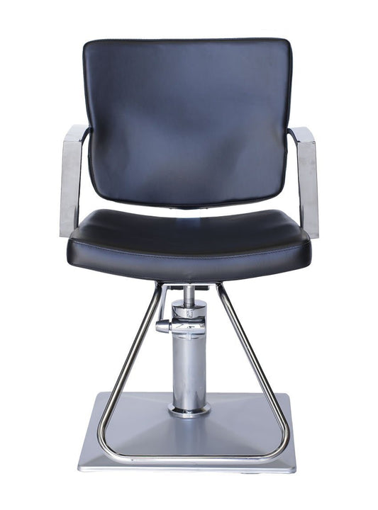 Ikonna Professional Hair Styling Chair – Black, Silver Arms & Square Base