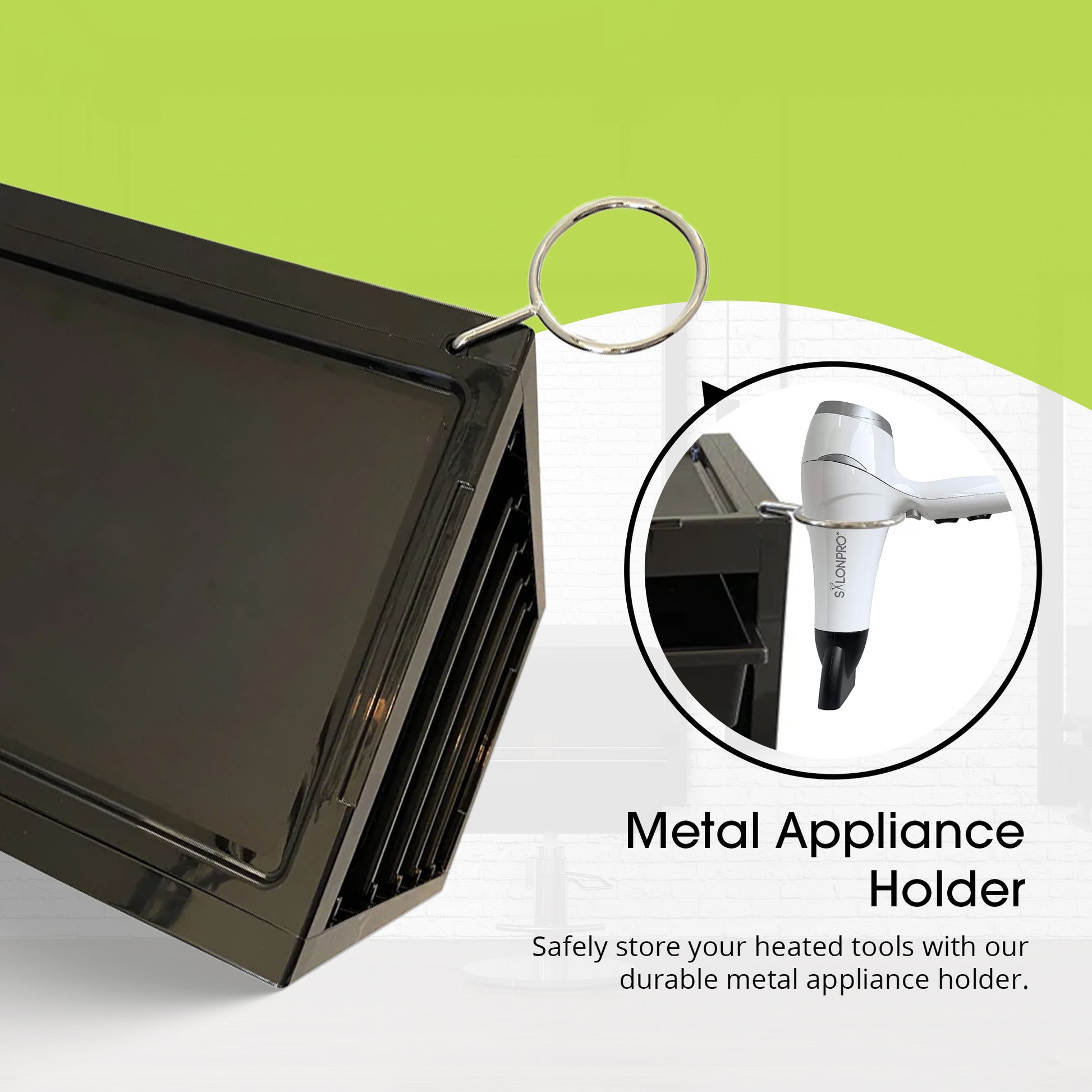 - Compacto y que ahorra espacio: Diseñado con una estructura compacta para ahorrar espacio y al mismo tiempo ofrece una amplia capacidad de almacenamiento, este carrito es perfecto para salones con espacio de trabajo limitado.
