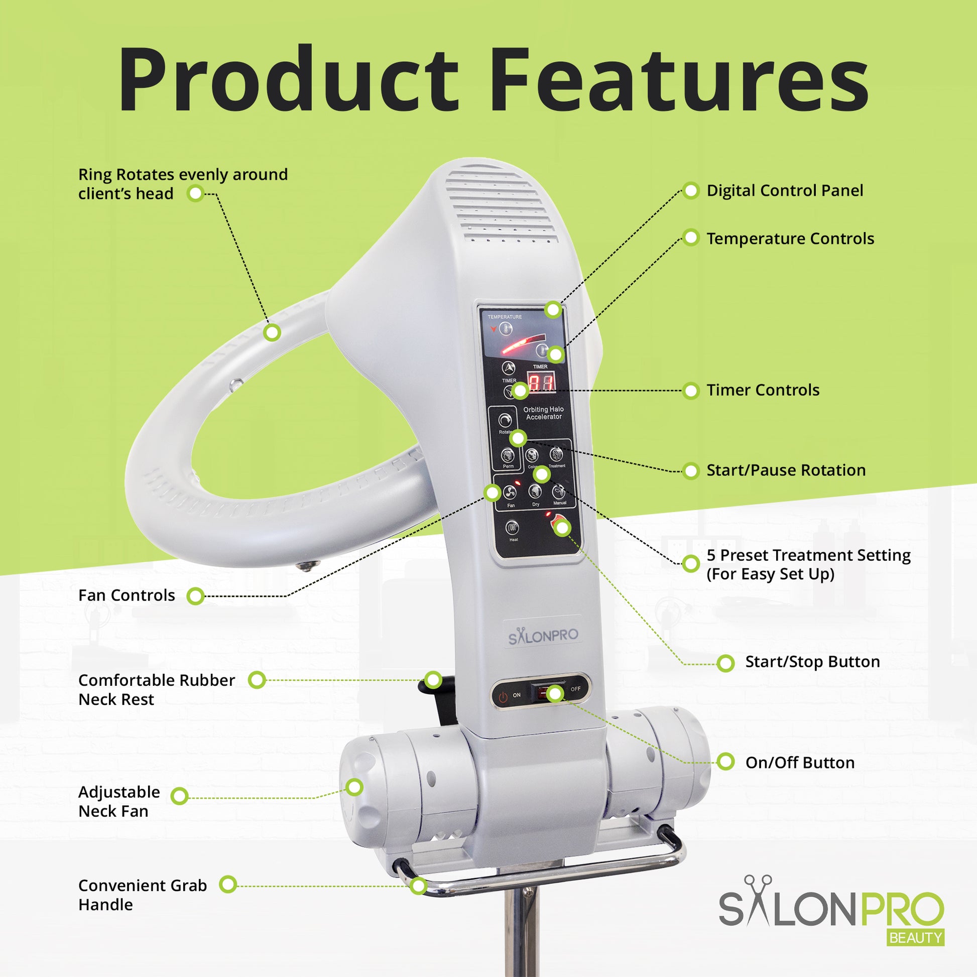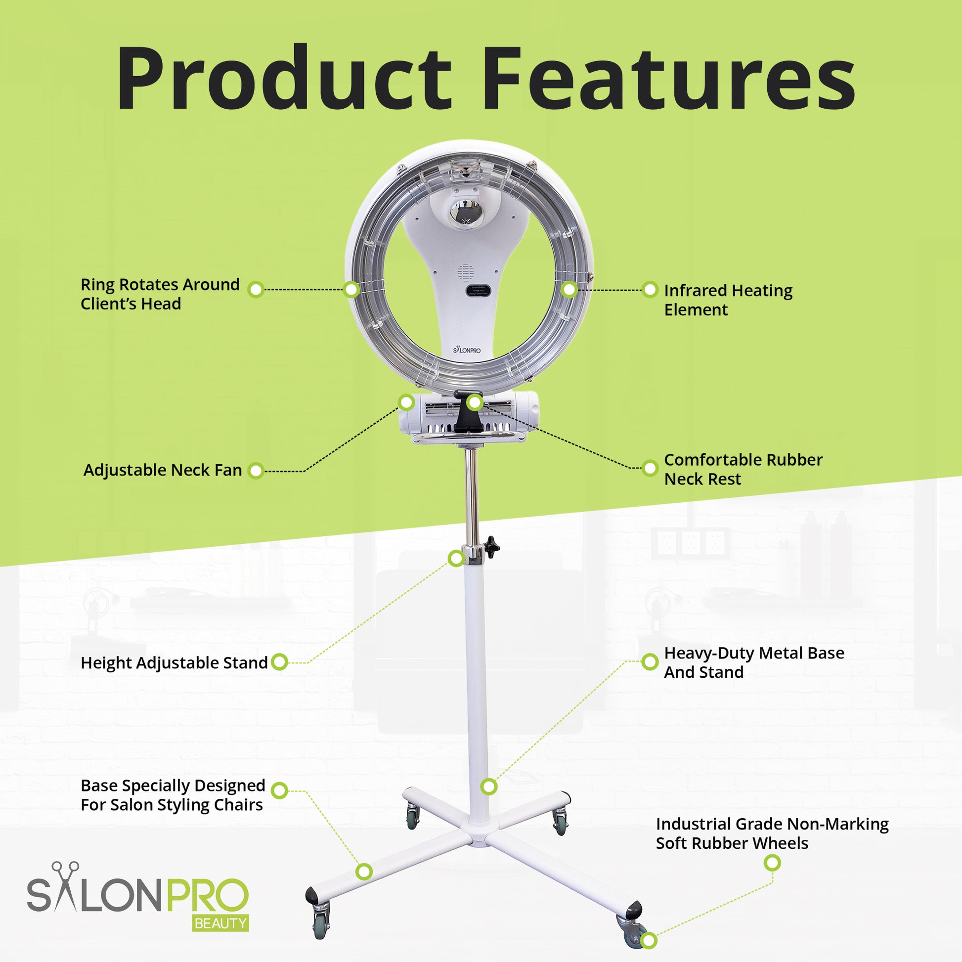 SalonPro Orbiting Halo Infrared Hair Color Processor & Dryer – Rolling Base, White