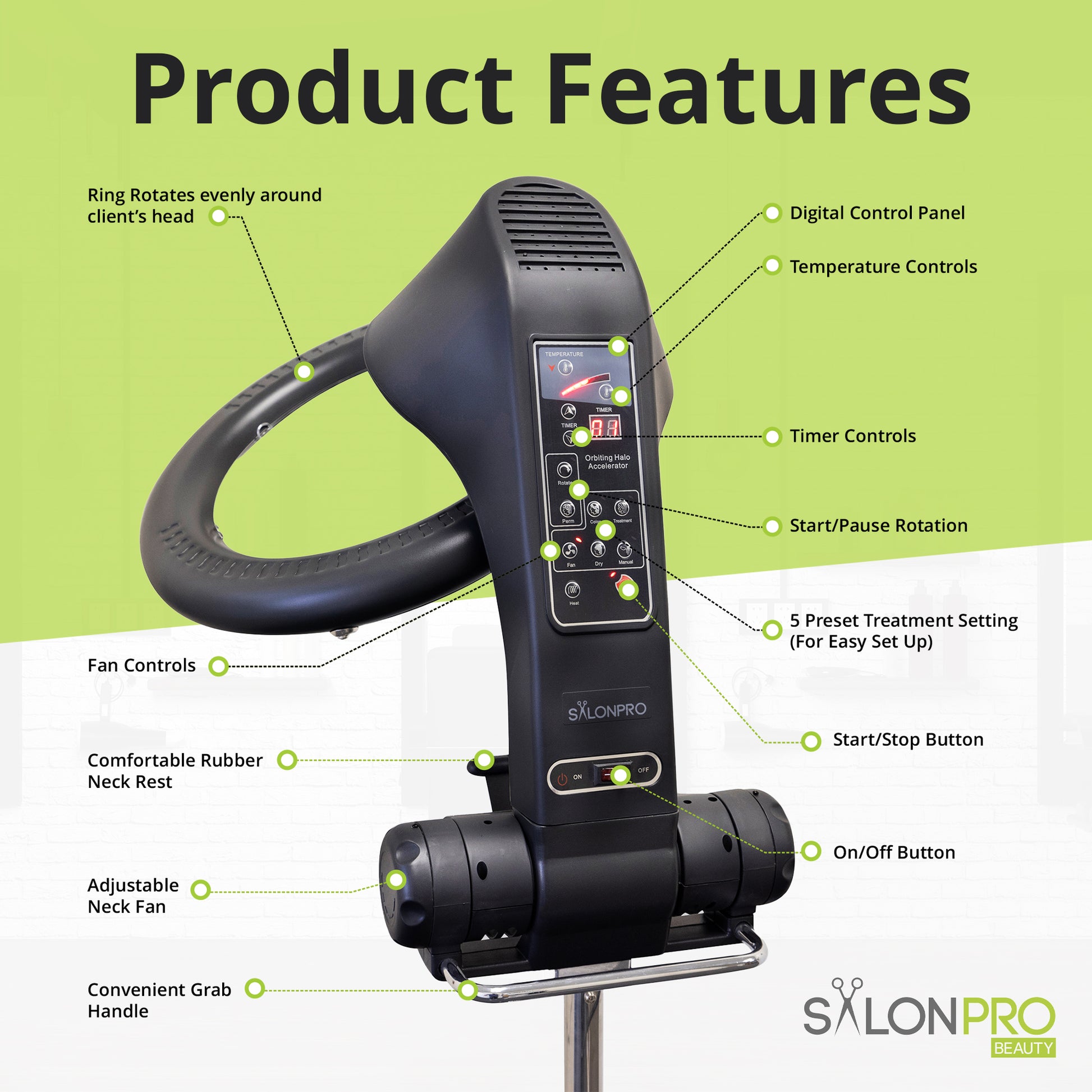 SalonPro Orbiting Halo Infrared Hair Color Processor & Dryer - Rolling Base, Black